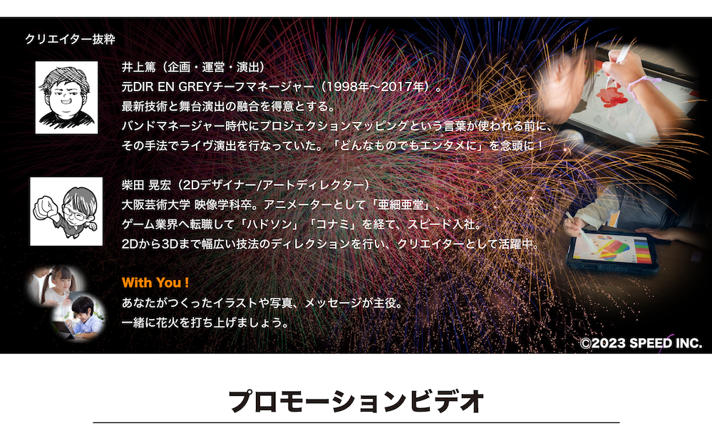 自画像や、好きなものなど自由な花火が体育館の天井を彩った。