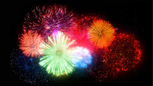 自画像や、好きなものなど自由な花火が体育館の天井を彩った。